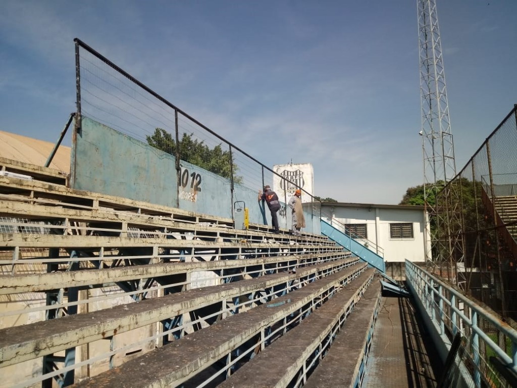 Cinco funcionários da empresa Fênix ,contratada pelos parceiros da capital seguem realizando trabalhos no Estádio Antonio Guimarães para que tudo esteja em ordem para vistoria do Corpo de Bombeiros em Novembro.Toda a parte de hidrantes já foi concluída.Agora trabalham no fechamento da arquibanca metálica dos fundos que teve parte retirada por determinação dos Bombeiros.Em seguida serão colocados corrimão e também escadas em arquibancadas. Enquanto isso um engenheiro cuida da liberação dos outros laudos que serão necessários para que o estádio esteja em ordem.